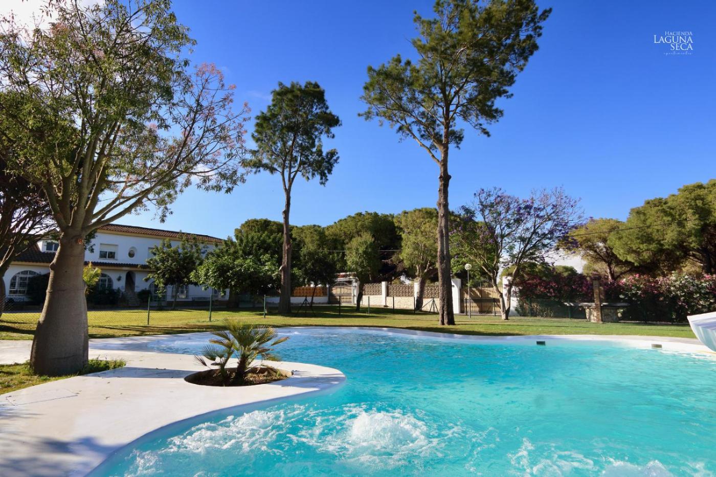 Hacienda Laguna Seca - Apart. Jazmin se encuentra en Chiclana de la Frontera y ofrece piscina privada. Dispone de piscina de temporada al aire libre, jardÃn, vistas a la piscina y wifi gratis en todo el alojamiento.