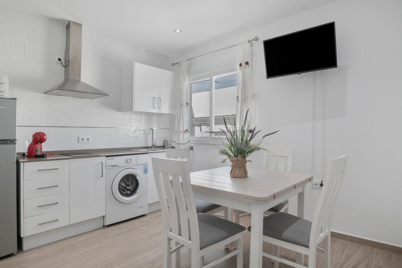 Apartamento con terraza. Boasting a private entrance, this air-conditioned apartment comes with 1 living room, 1 separate bedroom and 1 bathroom with a shower and a hairdryer. Guests can make meals in the kitchen that features kitchenware, a microwave and a toaster. This apartment has a washing machine, a coffee machine and a TV with satellite channels. The unit has 2 beds.