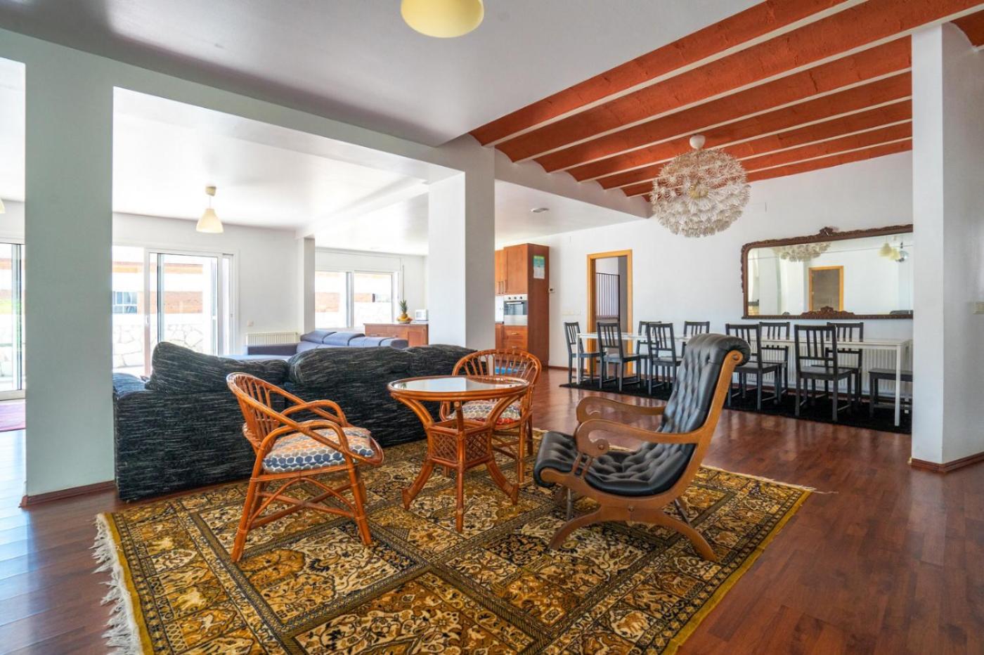Villa. The house includes a large living-dining area and an equipped kitchen, including an oven, dishwasher and washing machine. It has 6 bedrooms, each with a private bathroom. We have a shared pool.