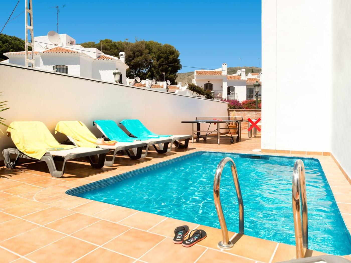 Nerja Paradise Rentals - Villa Buganvilla se encuentra en el corazón de Nerja, a poca distancia de Playa de Burriana y Balcón de Europa. Ofrece equipamiento como wifi gratis, aire acondicionado, nevera y cafetera. Este alojamiento con vistas a la piscina ofrece balcón.