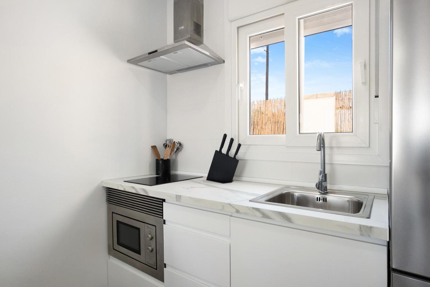 Apartamento con terraza. Boasting a private entrance, this air-conditioned apartment includes 1 living room, 2 separate bedrooms and 1 bathroom with a shower. The well-fitted kitchen has kitchenware, a microwave and a toaster. The apartment offers a washing machine, a coffee machine, as well as a terrace and a patio. The unit has 2 beds and 1 futon.